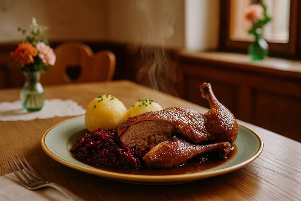 🦆 Gefüllte Ente mit Blaukraut – frisch aus unserer Hofküche