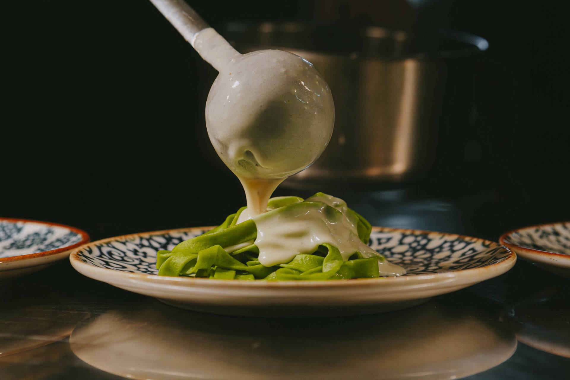 Filet & Klößchen vom Heilbutt an einer cremigen Safran-Sabayon